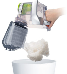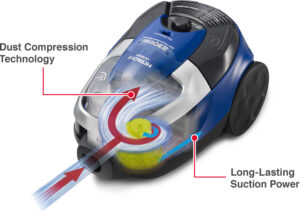 Easy Dust DisposalDust, together with the allergens it contains, is compressed by the Dust & Air Centrifugal Separation System. You can dispose of it with one-touch operation using just one hand without coming into contact with it. |
